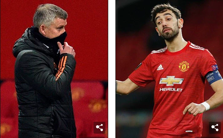 Ole khẳng định khi MU thua trận, ông là người thể hiện sự giận dữ nhất ở CLB chứ không phải Bruno. ẢNH: EPA, REUTERS
