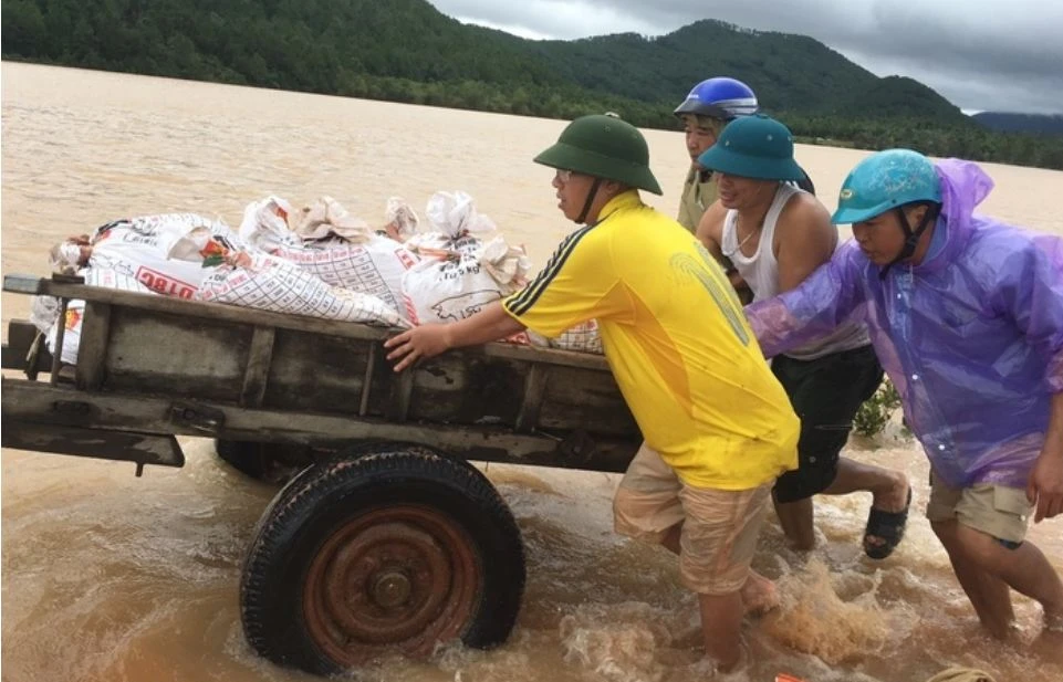 Chở đất, cát ứng cứu đập Gà ở xã Nghi Văn, huyện Nghi Lộc (Nghệ An)