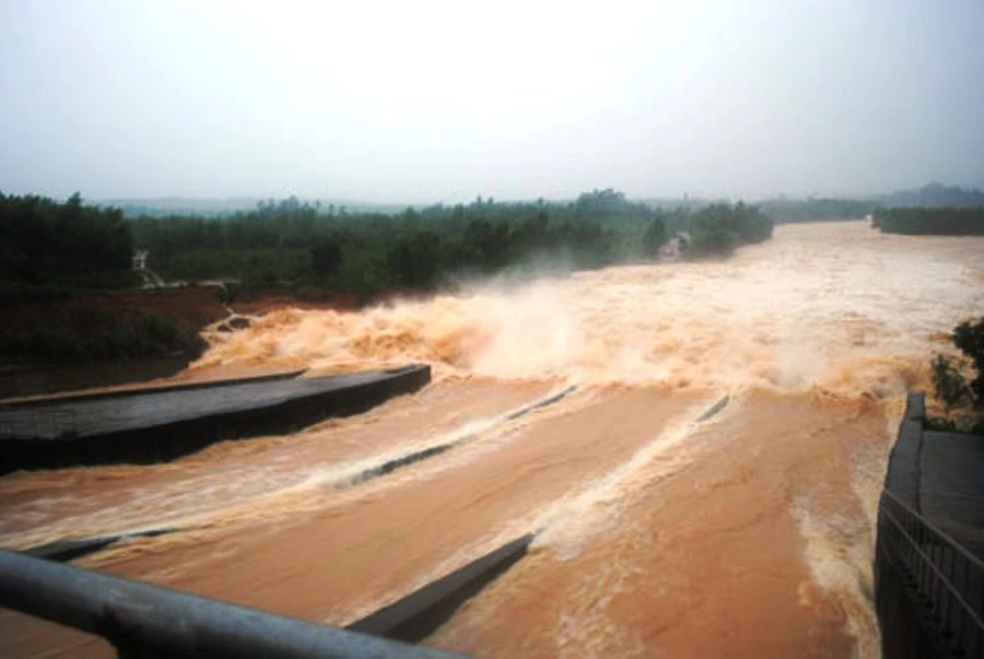 Hồ Vực Mấu (hồ lớn nhất tỉnh Nghệ An) xả lũ.
