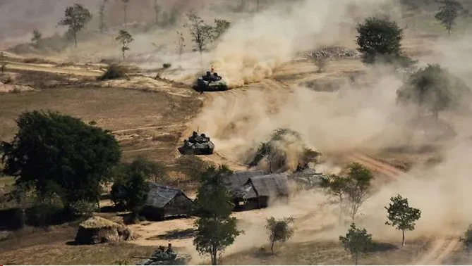 Giao tranh giữa quân đội và các tay súng các nhóm vũ trang thiểu số xuất hiện nhiều hơn kể từ sau chính biến. Quân đội nhiều lần thực hiện không kích ở các khu vực biên giới ở bắc và đông Myanmar.