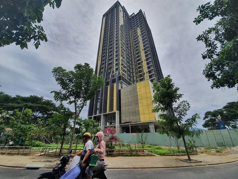 Khu vực này là mặt phía sau của tòa nhà, nhìn ra đường Đỗ Xuân Cát (quận Hải Châu) với khu dân cư đông đúc, bị phản ánh chói nắng.