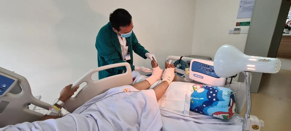 Khó khăn chưa dừng lại vì sau mổ, do được truyền lượng máu lớn, bệnh nhân có biểu hiện rối loạn đông máu. Các y, bác sĩ Khoa hồi sức tiếp tục điều chỉnh yếu tố đông máu, duy trì lưu thông máu, đảm bảo nuôi dưỡng, tưới máu tốt cho hai chân.