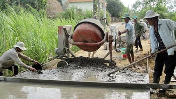 Làm đường bê tông nông thôn ở huyện Phù Mỹ. Ảnh minh họa.
