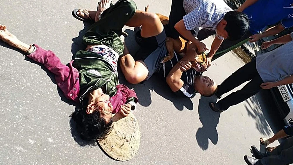 Trưa ngày 30-10, bà Tám đi bộ trên đường 19-4, Phan Thiết bới bọc rác của các gia đình để ở sát lộ tìm ve chai thì bất ngờ bị hai con chó giống Pitbull của một gia đình gần đó lao ra cắn xé ngã xuống đường.