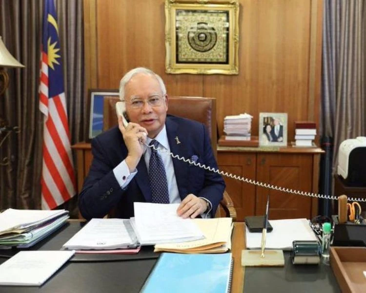 Thủ tướng Malaysia Najib Raazak gọi điện thoại cho Tham tán Đại sứ quán Malaysia tại Triều Tiên Mohd Nor Azrin. Ảnh: CNA