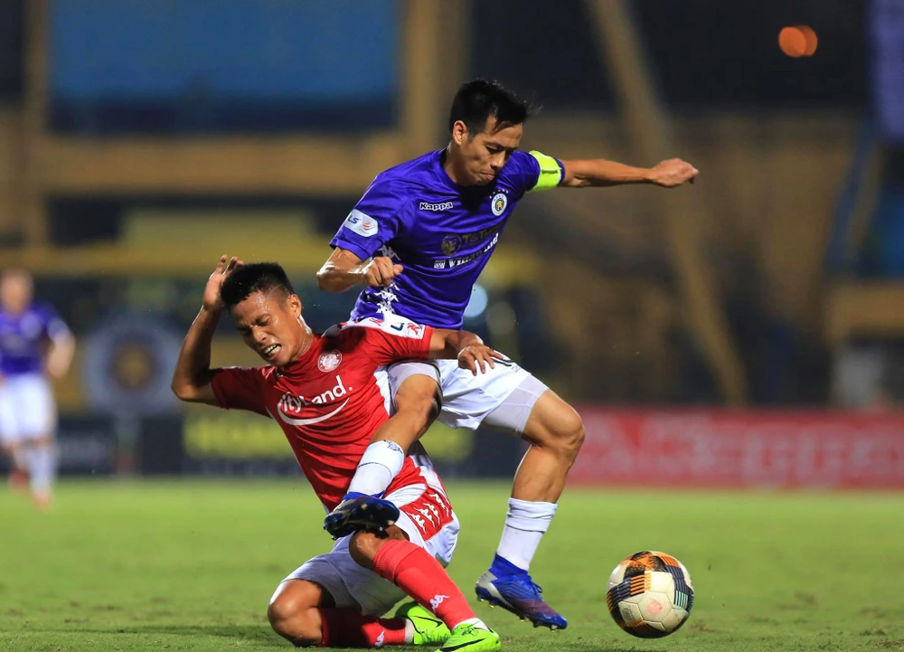 ... trong lúc cầu thủ Sài Gòn (trái) tự gây bất lợi cho mình khi mùa giải bước vào giai đoạn quyết định. Ảnh: ANH PHƯƠNG.