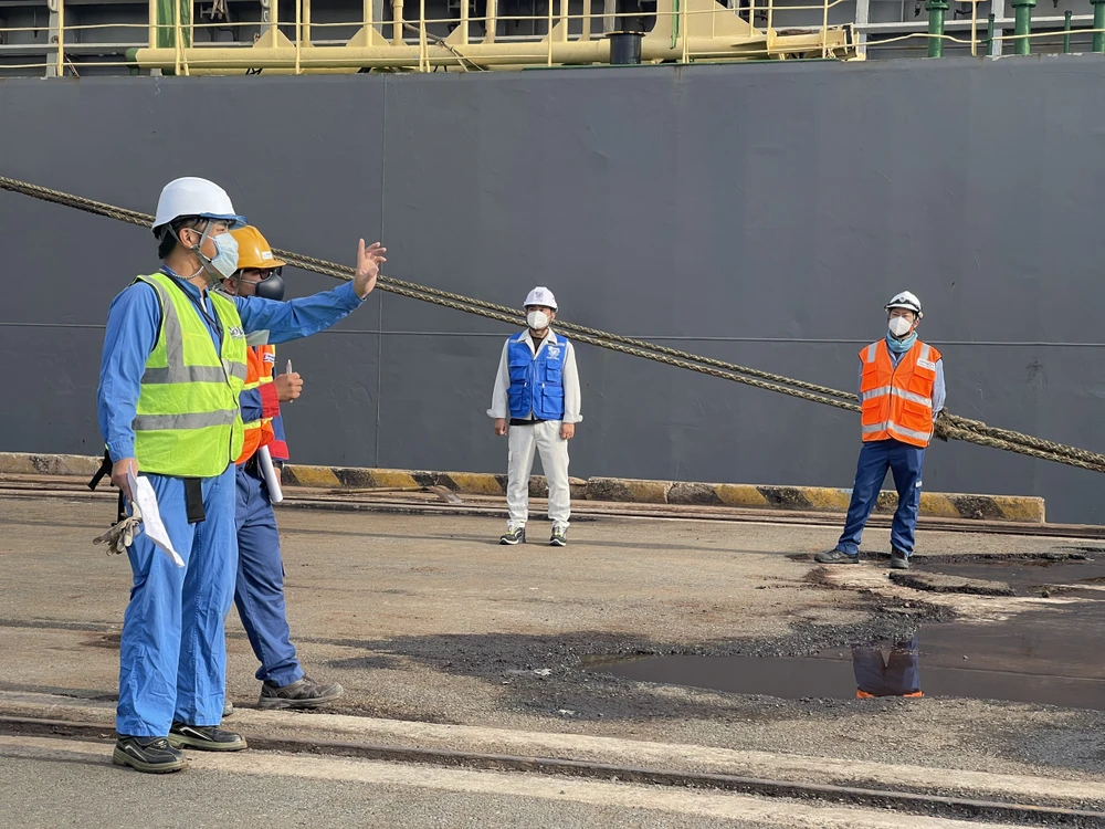 Nhà thầu phổ biến các quy định trước khi bốc dỡ tàu. Ảnh: ĐT.
