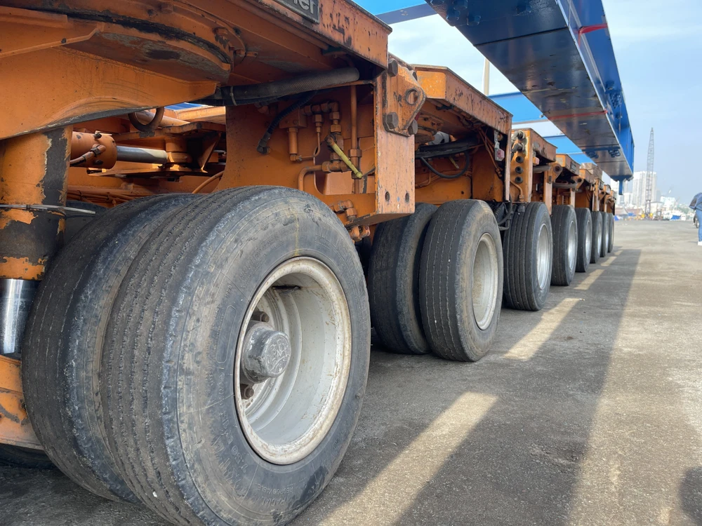 Phía dưới, chiếc xe siêu trường siêu trọng đã chờ sẵn. Đây cũng là phương tiện vận chuyển tàu metro về Depot Long Bình, TP Thủ Đức.