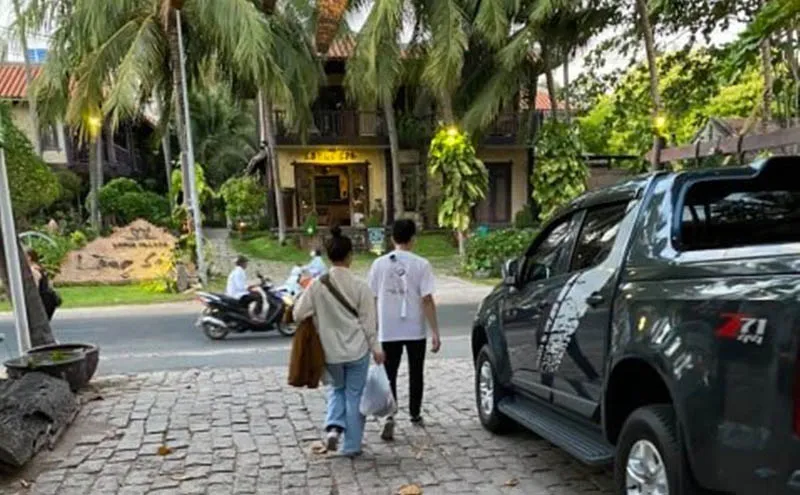 Hai du khách Hàn Quốc rời resort ở Phan Thiết.