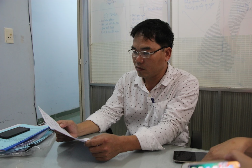 Ông Trà đang trình bày việc mình bị oan sai với báo Pháp Luật TP.HCM. Ảnh:HH.