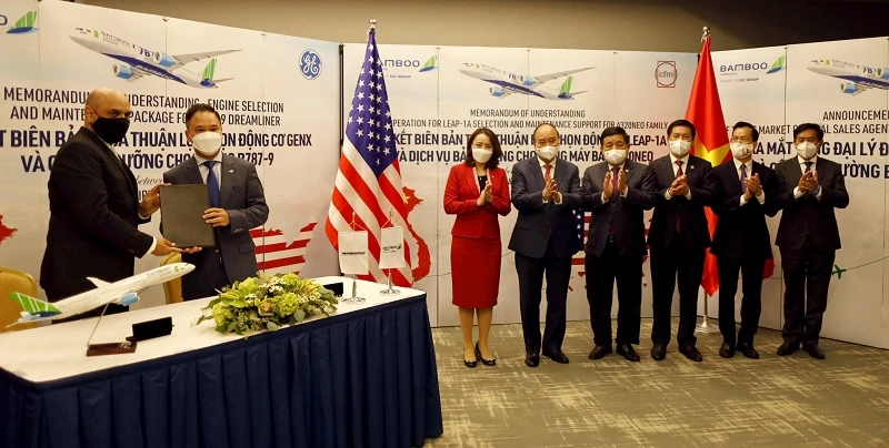 Cùng ngày, Bamboo Airways cũng tổ chức lễ ra mắt công bố đường bay thẳng Việt – Mỹ tại Millennium Hilton New York One United Nations Plaza, New York (Mỹ) với sự chứng của Chủ tịch nước Nguyễn Xuân Phúc.