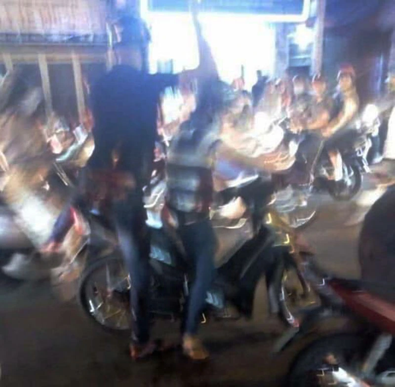 Hai "hiệp sĩ" cố gắng chở nhau đến bệnh viện.