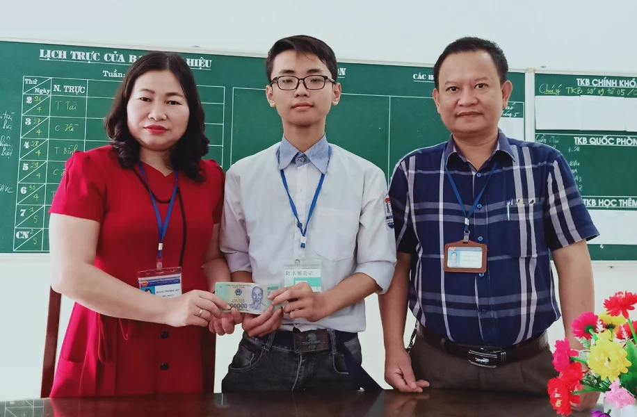 Chiều 27-4, bà Hoàng Thị Kim Liên, Hiệu Trưởng Trường THPT Nguyễn Duy Trinh (huyện Nghi Lộc, Nghệ An) cho biết, Ban giám hiệu đã biểu dương em Trần Sỹ Quỳnh (học sinh lớp 12A) vì nhặt được của rơi trả người đánh mất.