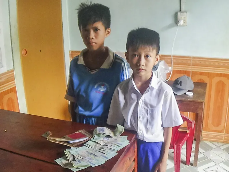 Trước đó, hai em Lê Phước Thịnh (học lớp 7) và em Mai Tuấn Kiệt (học lớp 3, Trường Tiểu học và Trung học cơ sở Cam Nghĩa) đang đi chơi trên đoạn đường thuộc thôn Thượng Nghĩa (xã Cam Nghĩa, huyện Cam Lộ) đã nhặt được một cái ví bên trong có chứa số tiền 16.200.000 đồng.