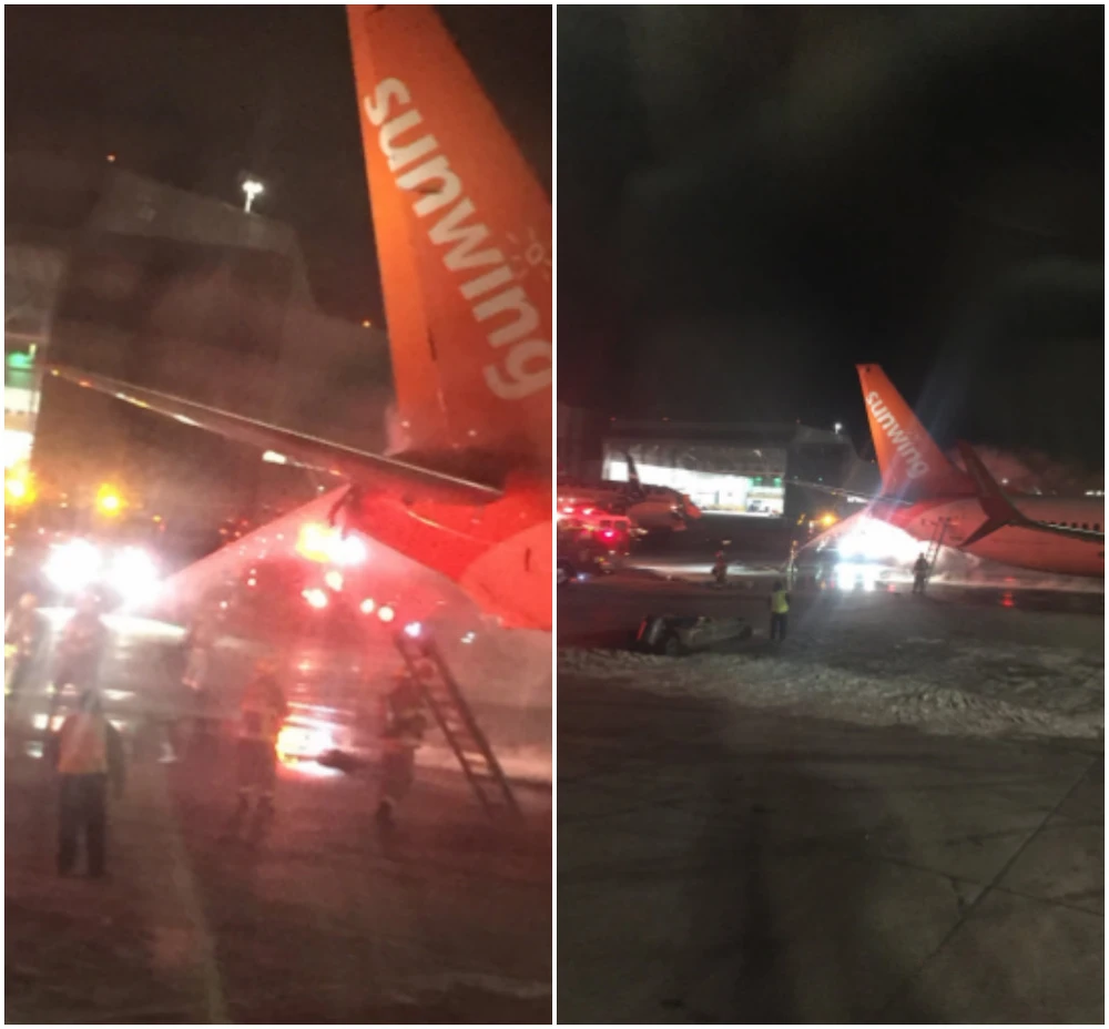 Vụ tai nạn xảy ra khi máy bay hãng Sunwing (không chứa hành khách) đang lùi vào cổng nhà chứa máy bay, theo truyền thông địa phương.