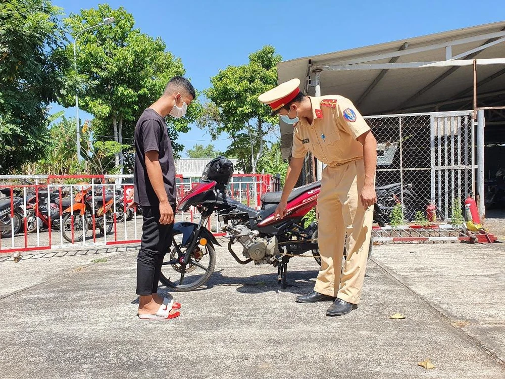 Đội CSGT-TT lập biên bản xử phạt bà T. (mẹ Ph.) về các lỗi: Tự ý thay đổi kích thước của xe; Giao xe cho người không đủ điều kiện theo quy định. Tổng mức phạt tiền chung đối với bà T. là 2,8 triệu đồng; buộc khôi phục lại nguyên trạng ban đầu của xe mô tô 72D1-218.97 theo đúng tiêu chuẩn kỹ thuật.