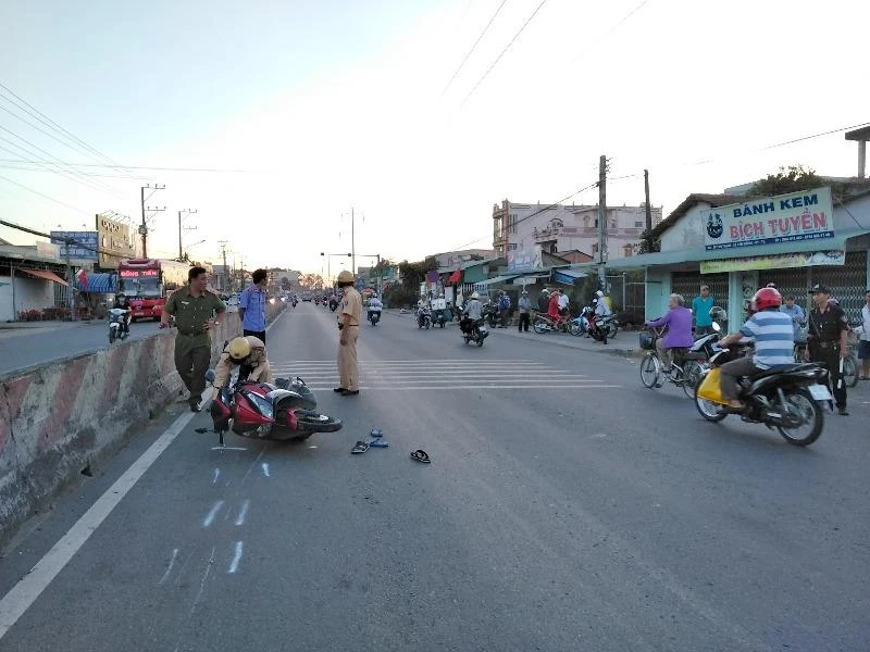 Theo người dân chứng kiến tại hiện trường vụ tai nạn kể lại, vào khoảng 17 giờ 30 ngày 21-2, mô tô biển số 63B2-401.64 do một phụ nữ điều khiển đang lưu thông trên quốc lộ 1A, hướng đi từ TP.HCM về miền Tây.