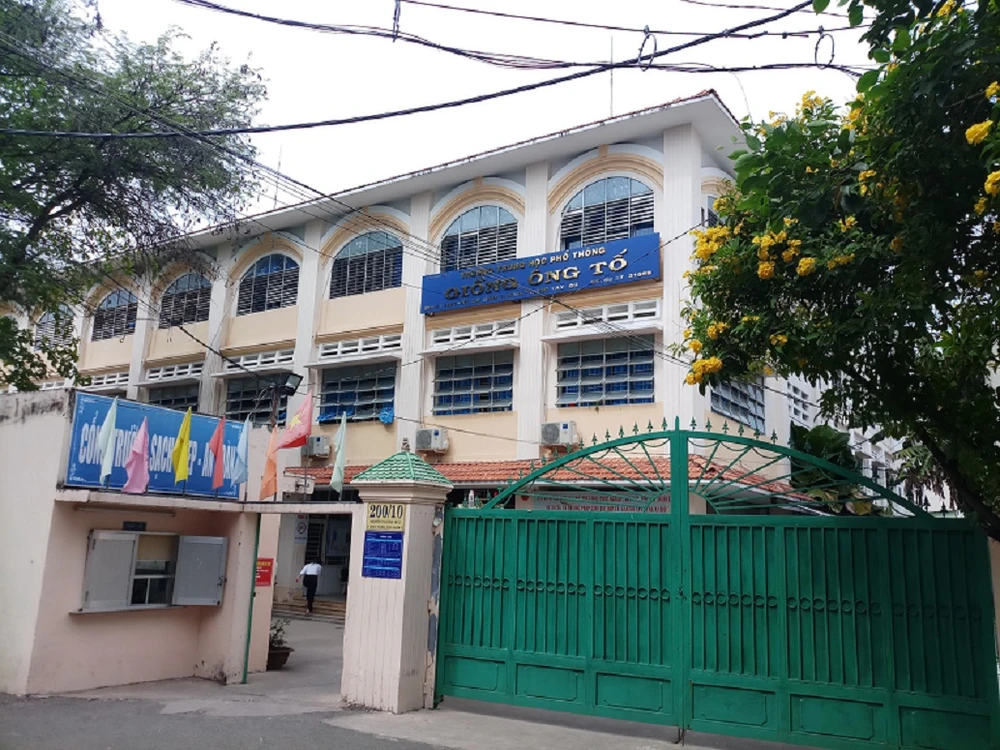 Trường THPT Giồng Ông Tố, quận 2 nơi xảy ra sự việc nam sinh đặt máy quay lén trong nhà vệ sinh nữ. Ảnh: NGUYỄN QUYÊN