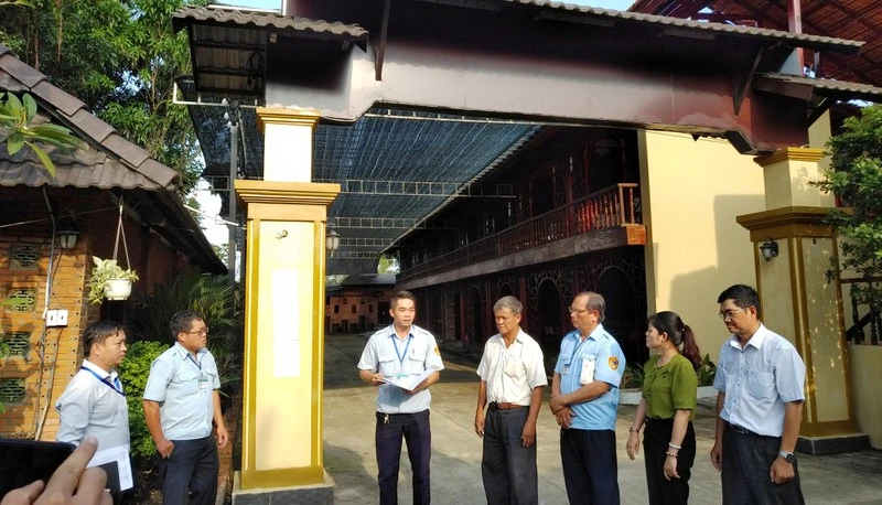 Lực lượng chức năng huyện Bình Chánh thông báo quyết định đến chủ Gia Trang quán - Tràm Chim resort. Ảnh: SGGP