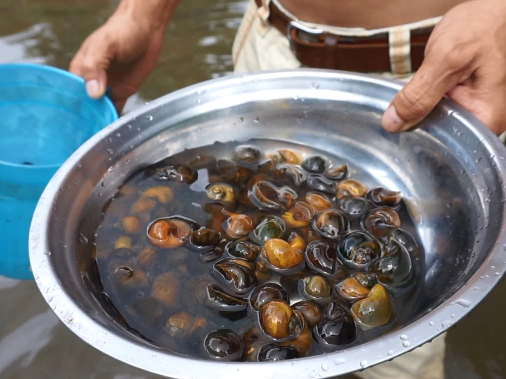 Mưa lớn, ốc bươu cũng tràn vào nhiều nhà dân.