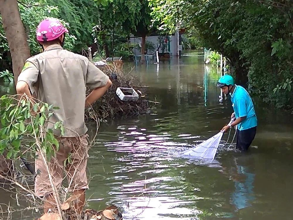 Trong khi đó, nhiều người dân tranh thủ quăng lưới bắt cá.