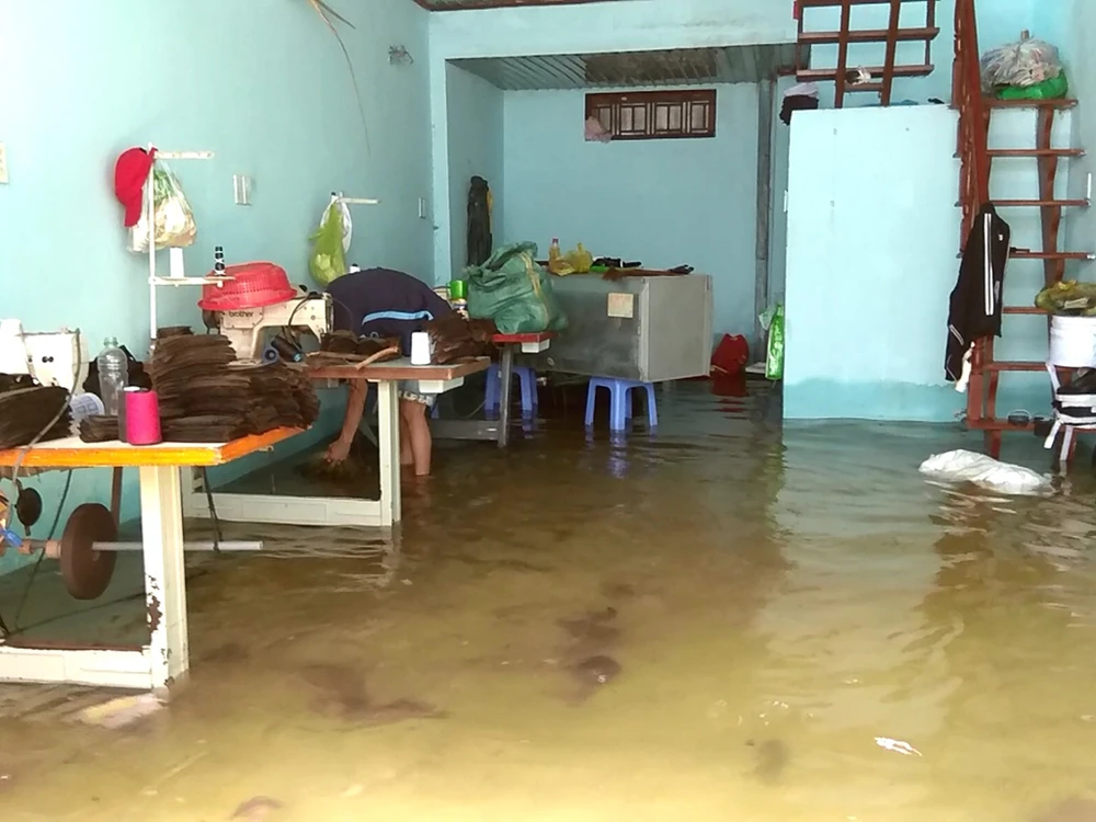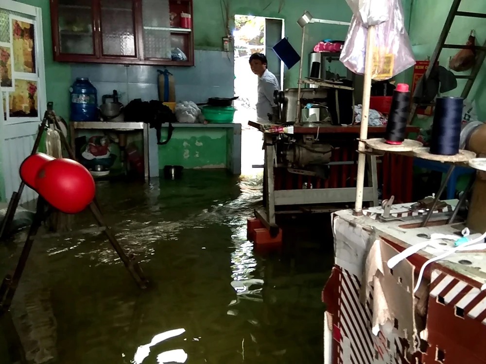 Trên địa bàn 2 phường tập trung rất nhiều hộ dân làm nghề may. Nước lớn khiến nhiều hộ có vải vóc bị nhấn chìm, nếu nước không rút có thể khiến vải bị hư.