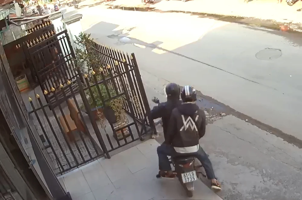 Cả hai để nguyên nón, khẩu trang đi vào bên trong, một người cầm búa đập tủ kính. Người còn lại rút súng từ lưng quần chĩa vào trong thị uy rồi bắn về phía chủ tiệm là anh Nguyễn Văn Thông (43 tuổi).