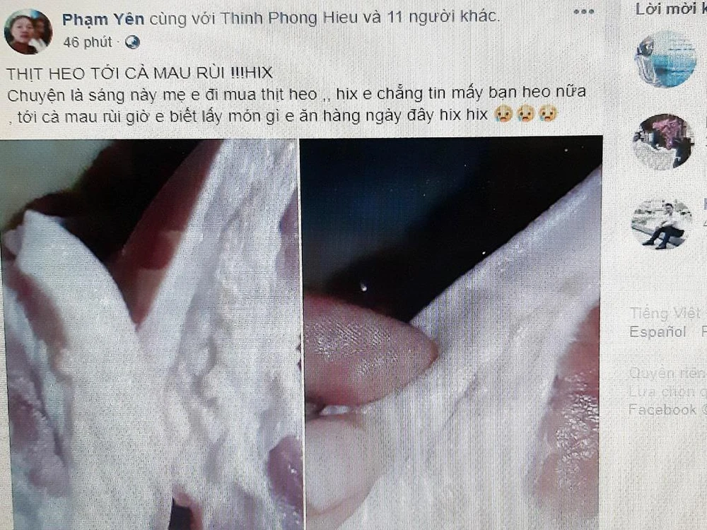 Các thông tin cụ thể gồm “Tới Cà Mau rồi, thề k ăn thịt heo luôn”; “Thịt heo tới Cà Mau rùi !!! hix… Giờ em biết lấy món gì e ăn hàng ngày đây hix hix”.