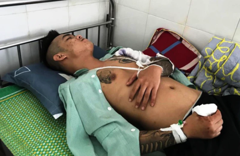 Anh Lê Ngọc Anh bị trúng đạn được đưa đi cấp cứu. Ảnh: CTV