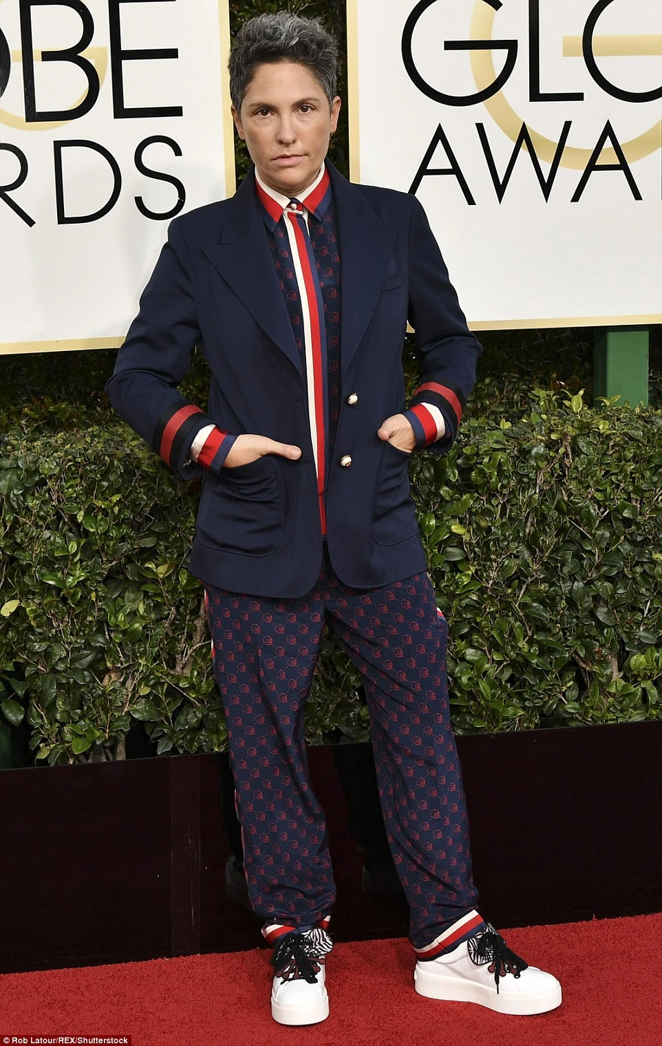 Jill Soloway trông như sắp xem Netflix (dịch vụ xem video trực tuyến) trên giường ngủ hơn là đi dự lễ trao giải Quả cầu vàng. Ảnh: DAILY MAIL