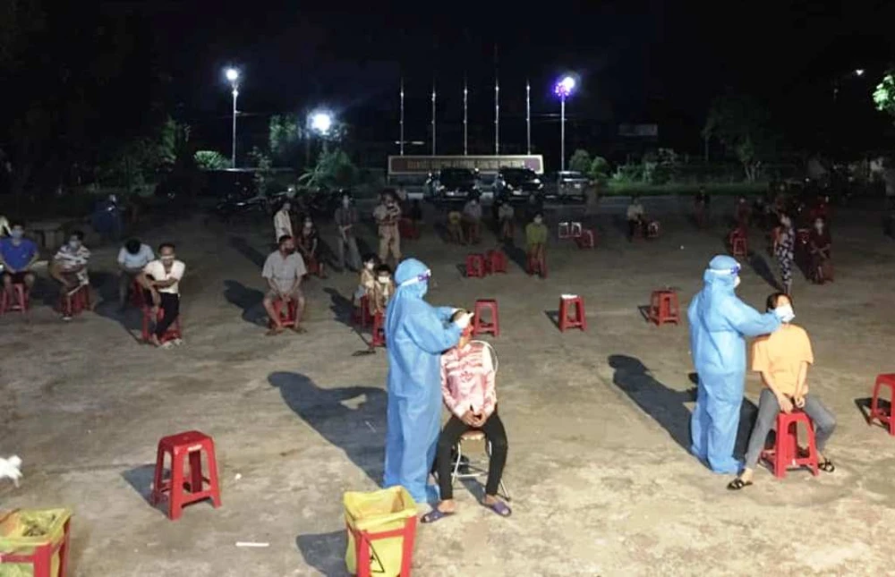 Lấy mẫu xét nghiệm cho người dân ở huyện Hưng Nguyên (Nghệ An).