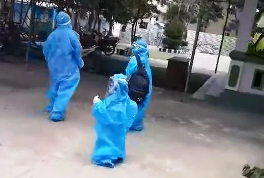 Trẻ em ở huyện Nghi Lộc (Nghệ An) là F0 được đưa đi bệnh viện chữa trị.
