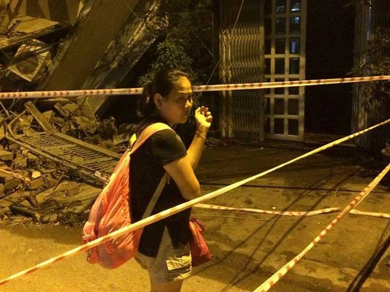 Còn nhân chứng Quốc Hồng cho biết: “Chúng tôi đang ngồi nhậu thì bất ngờ nghe tiếng hô hoán, căn nhà đối diện nghiêng như muốn sập. Tôi cùng nhiều người chạy vào nhà 49 gọi người chạy thoát thân. Một cụ ông khoảng 70 tuổi, người Hàn Quốc bị tật ở chân vẫn còn loay hoay lấy ít giấy tờ tùy thân. Chúng tôi phải cõng người này nhanh chóng thoát ra ngoài. Sau đó thì cả hai căn nhà đổ sập xuống, may mắn không có người bị thương”.