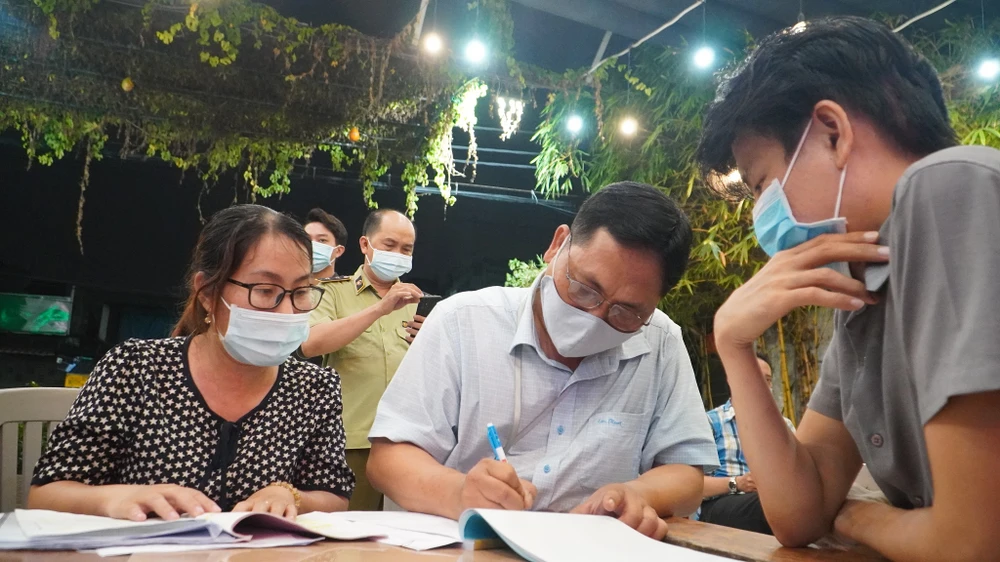 Đoàn kiểm tra liên ngành VHXH quận Bình Thạnh đột xuật kiểm tra một số hàng quán ngay trong đêm. Ảnh: MINH TÂM