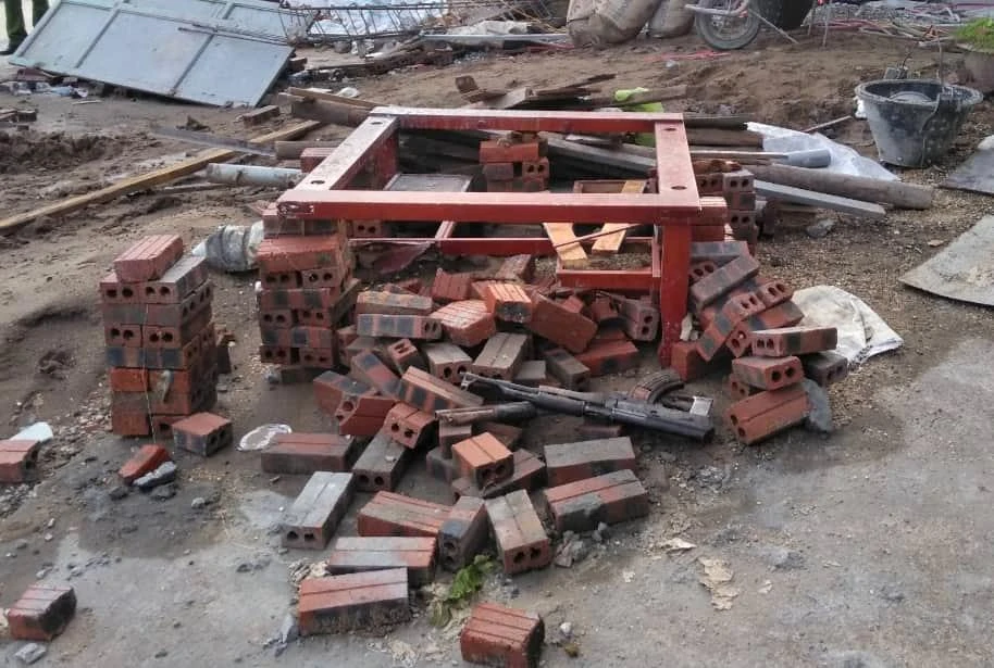 Khi bị công an truy đuổi, hai nhóm giang hồ tháo chạy, bỏ lại hiện trường 2 khẩu súng quân dụng dạng tiểu liên. Ảnh: CTV