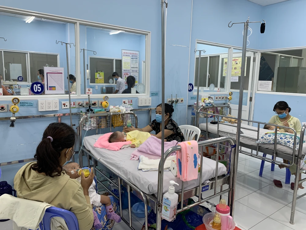 Trẻ nhập viện do bệnh hô hấp ở Bệnh viện Nhi đồng 1 tăng cao trong thời gian gần đây. Ảnh: HL