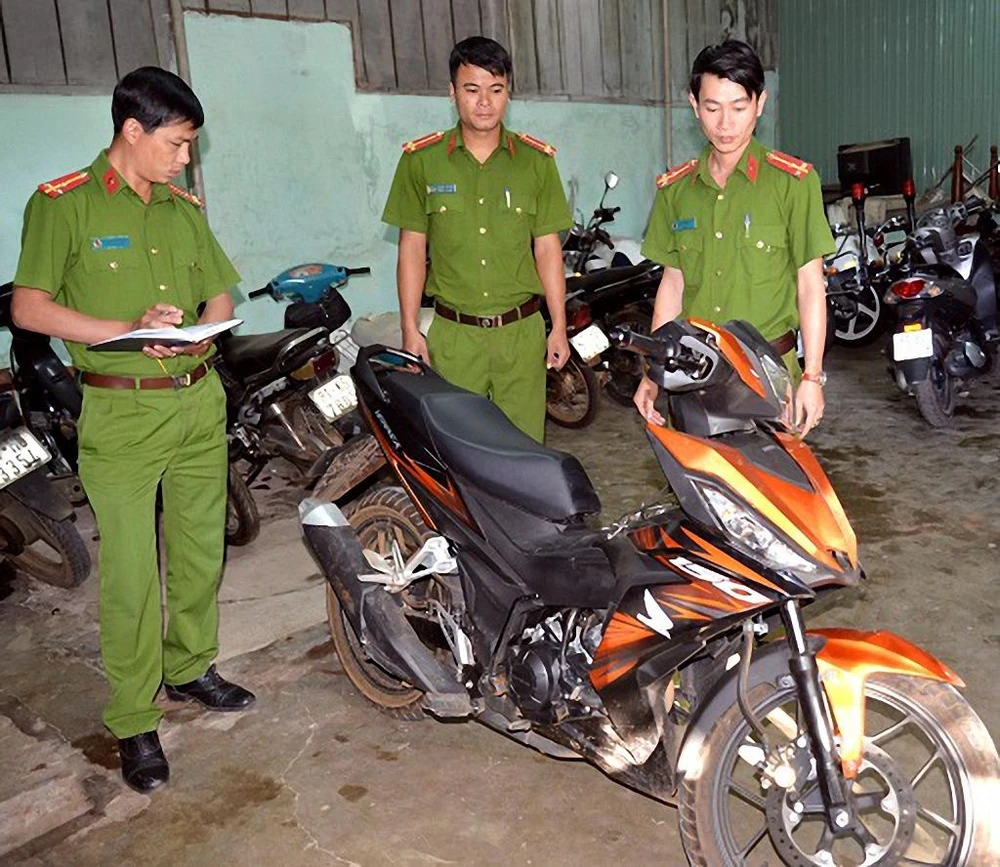 Tại hiện trường, tổ công tác tạm giữ một xe mô tô và thu giữ 1 khẩu súng bên trong có 4 viên đạn.