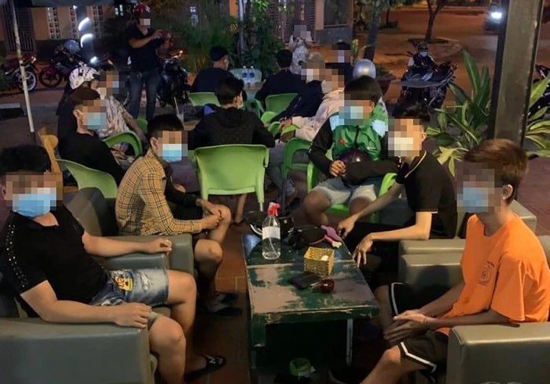 Nhóm thanh niên tụ tập tại phường Linh Xuân bị công an bắt giữ. Ảnh: TS