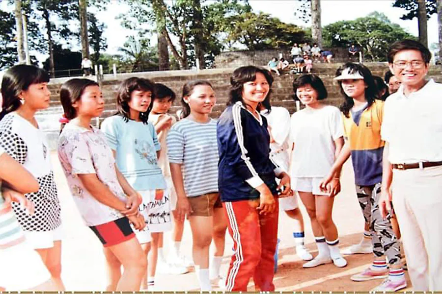 Ông Tư Ngữ (bìa phải) và đội bóng đá nữ quận 1 thời còn bị cấm đoán