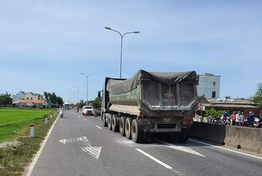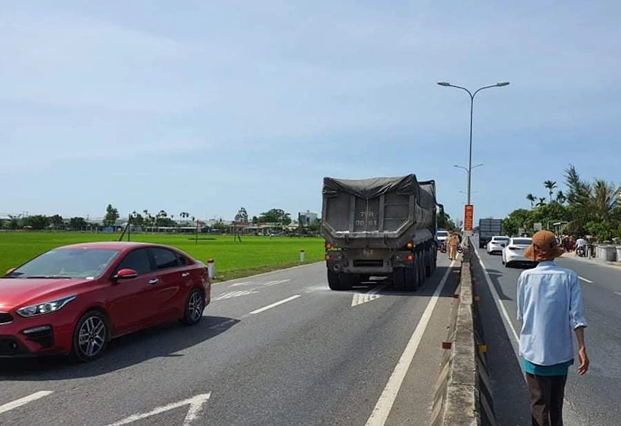 Khoảng 8 giờ 45 phút, ô tô 75C-037.16 kéo theo rơ-moóc 75R-001.61 do tài xế Nguyễn Việt Thành (36 tuổi, ngụ Thừa Thiên Huế) điều khiển chạy hướng TP Đà Nẵng – Quảng Nam. Khi đến đoạn đường này, ô tô di chuyển vào đường đã phân luồng ở làn đường bên cạnh.