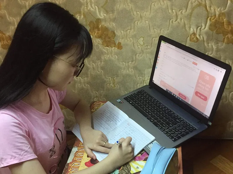 Học sinh lớp 12 Trường THCS - THPT Đào Duy Anh, quận 6, TP.HCM đang ôn bài tại nhà. Ảnh: NTCC