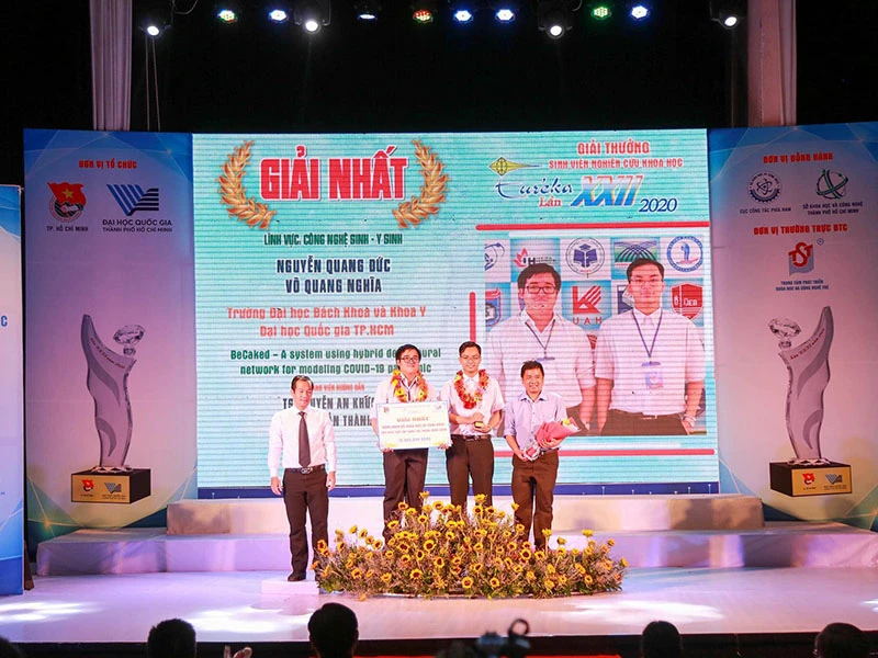 Hệ thống dự báo dịch COVID-19 (Becaked) của Nguyễn Quang Đức (20 tuổi, sinh viên (SV) Trường ĐH Bách khoa TP.HCM) và Võ Quang Nghĩa (22 tuổi, SV Khoa y ĐH Quốc gia TP.HCM) đã xuất sắc giành giải nhất lĩnh vực công nghệ sinh học - y sinh cuộc thi SV nghiên cứu khoa học Eureka năm 2020.
