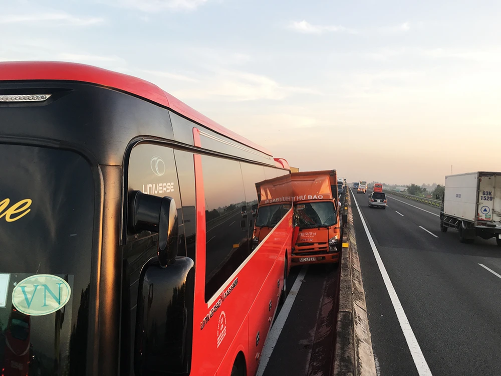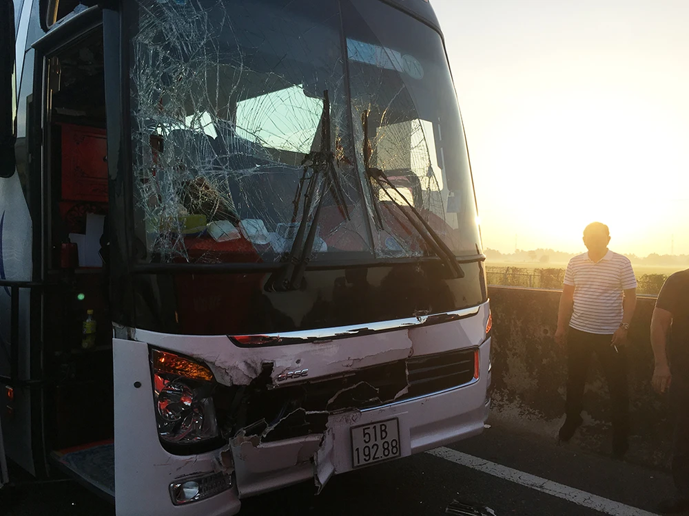 Khi đến km 25 (thuộc địa phận huyện Bến Lức, tỉnh Long An) thì tông thẳng vào xe khách biển số TP.HCM chở hàng chục em nhỏ.