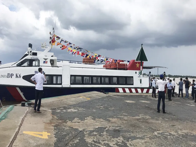 Tàu cao tốc đã cập bến tại Tiền Giang vào trưa 19-8. Ảnh: PV