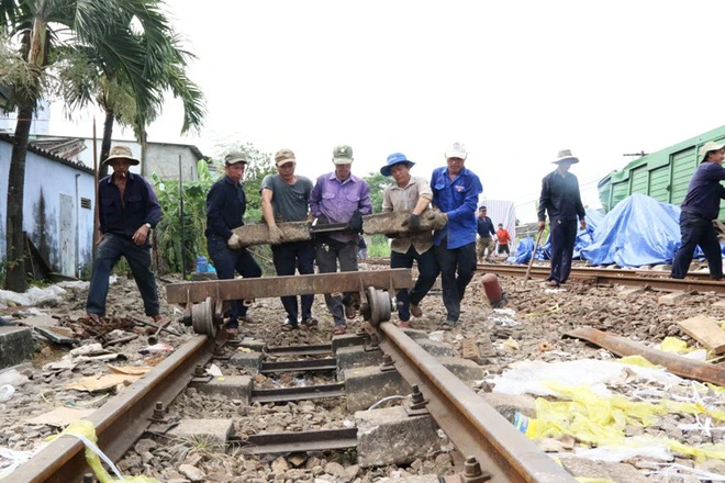 Các đơn vị chức năng đã hoàn thiện sửa chữa đường ray số 2, thông tuyến đường sắt Bắc-Nam từ chiều 27-5. Đường ray số 1 đang được tiếp tục sửa chữa. Riêng đường ray số 3 vẫn còn ngổn ngang các toa xe hàng, đầu máy hư hỏng…