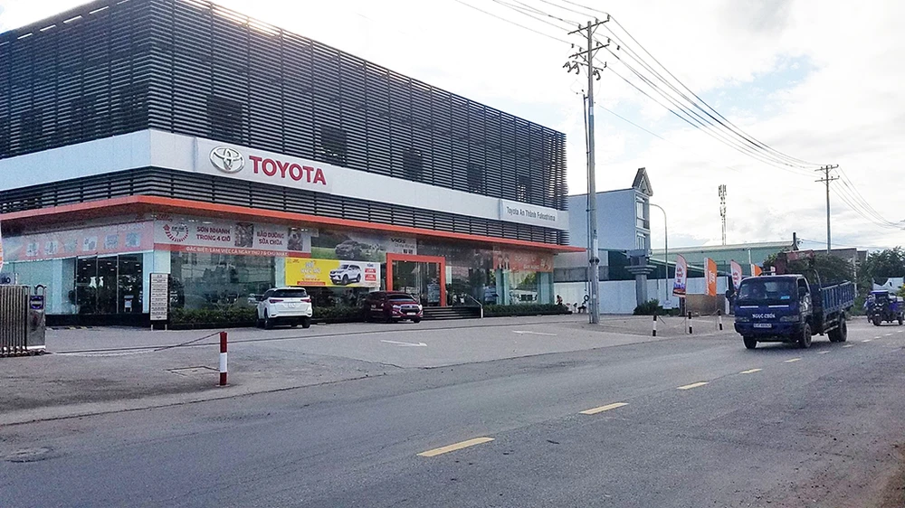 Hiện trường vụ việc xảy ra trước một showroom ở thị trấn Tân Túc (huyện Bình Chánh, TP.HCM). Ảnh HT