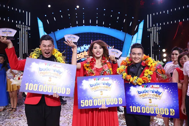 Thanh Huyền (giữa) giành số điểm cao nhất 61,1 điểm và xuất sắc đoạt quán quân. Quang Duy (trái) và Nhất Thống cùng đoạt giải á quân. Ảnh: ZING