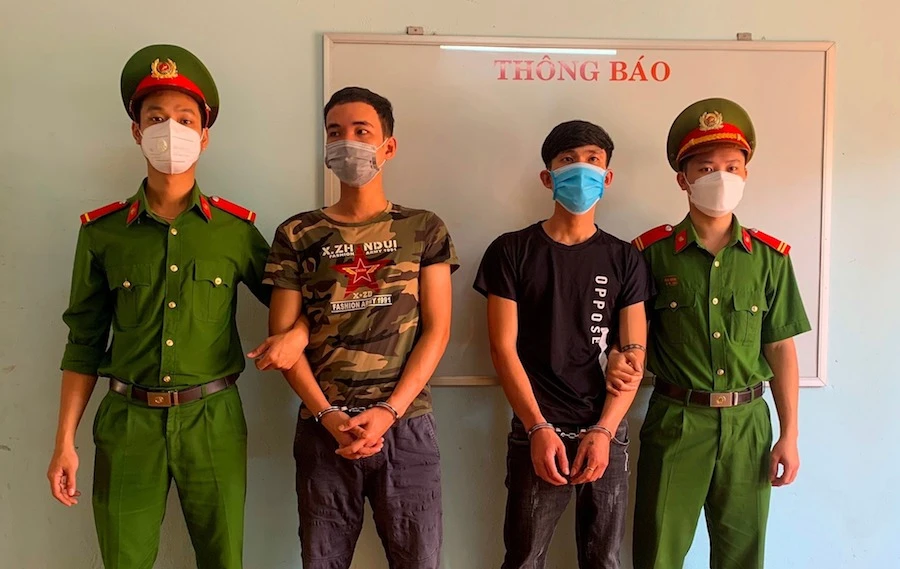 Công an huyện Thăng Bình đã thực hiện lệnh bắt tạm giam đối với Huy và Truyền. Ảnh: CA