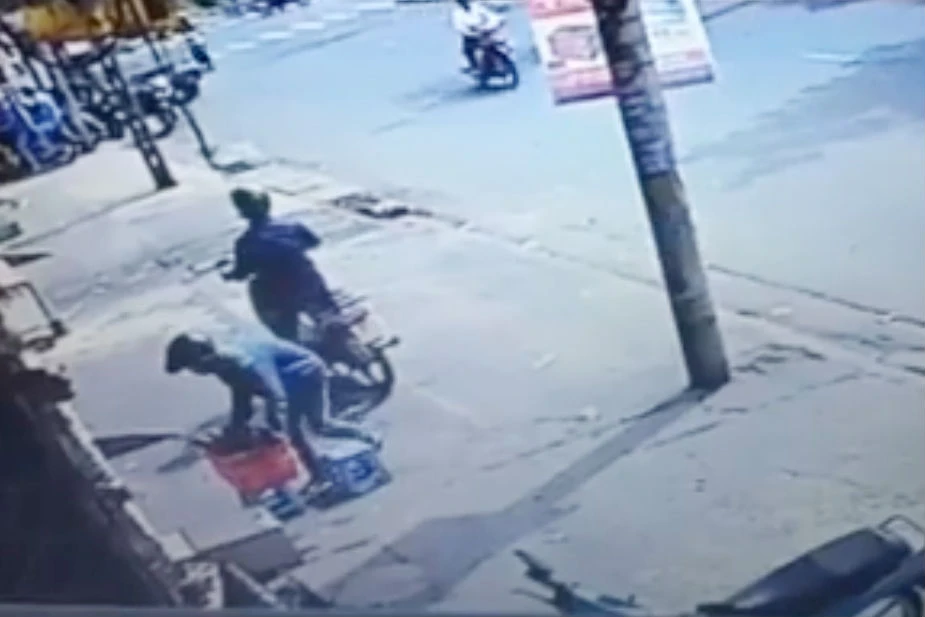 Sự việc xảy ra vào sáng 28-12 trên đường Nguyễn Ái Quốc (gần chợ Tân Phong, TP Biên Hòa, Đồng Nai). Hành vi của hai kẻ trộm bị camera bên đường ghi lại.
