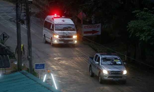 Truyền thông địa phương đưa tin hai cậu bé đầu tiên rời hang đã được chuyển tới bệnh viện ở Chiang Rai bằng trực thăng.